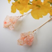 花柄のリボンを閉じ込め、光に透けるやわらかな模様とゆらぎのあるフォルムを一つ一つ曲げて作りました