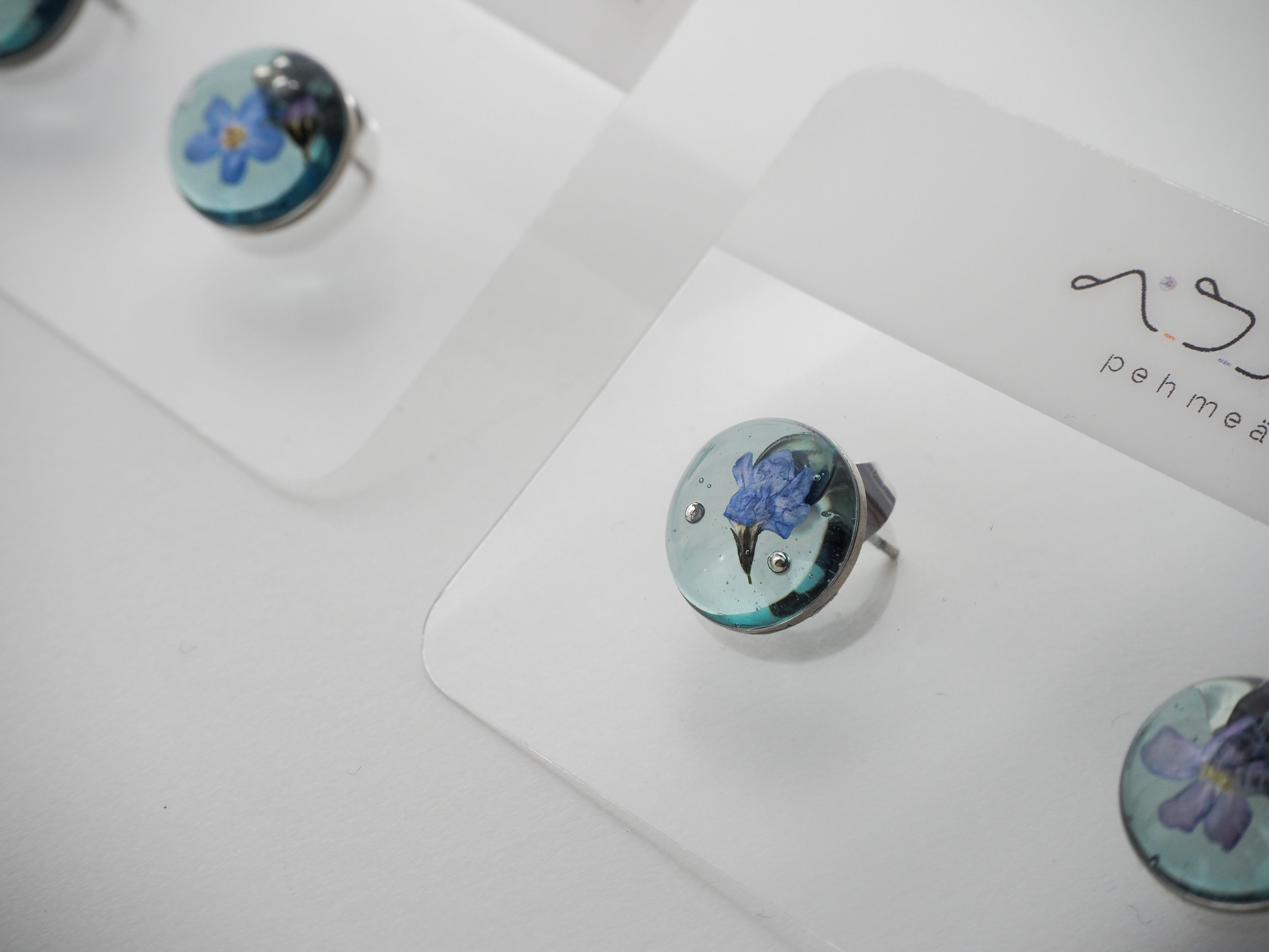 水辺に浮かんでいるかのような勿忘草をイメージしてデザインしました。
